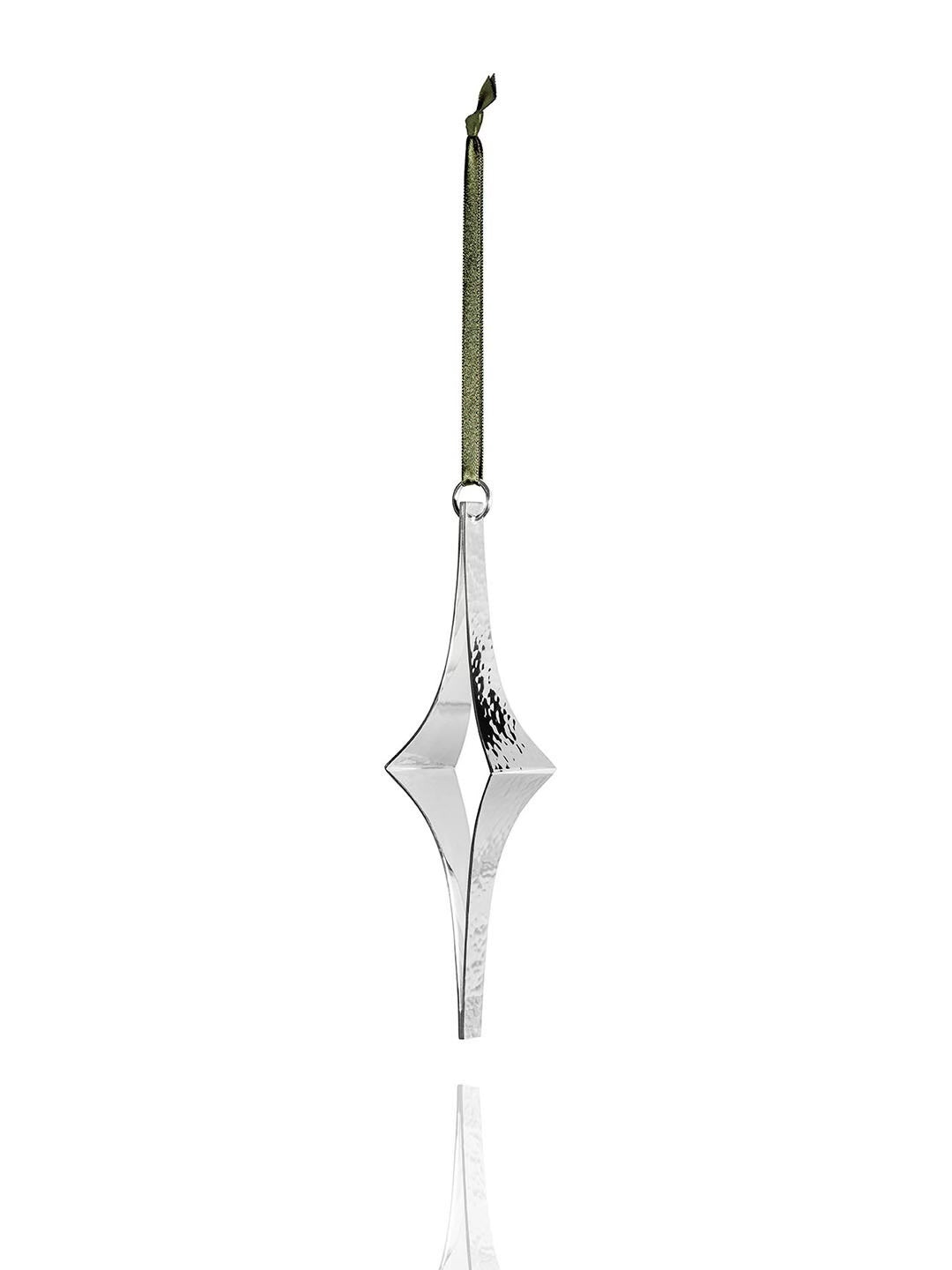 Pour cette année anniversaire, j'ai imaginé une décoration où les pans d'argent jouent avec la transparence des parties ajourées. Ce jeu de reflet est accentué par un décor de facettes martelées, empreintes naturelles du marteau de l'orfèvre.